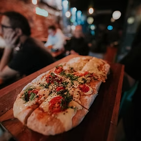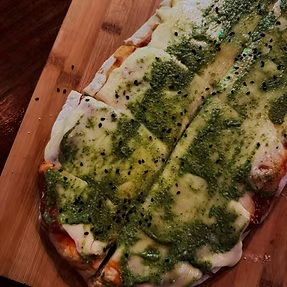 pizza muzarella al pesto de albahaca y nuez