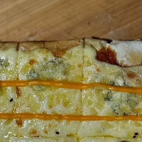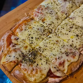 pizza muzarella con queso cheddar, parmesano y roquefort