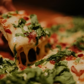 pizza muzarella con rúcula y bondiola